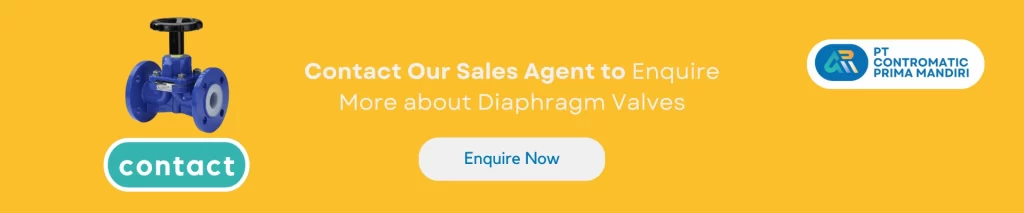 Kesimpulannya, diaphragm valve adalah komponen yang penting ketika Anda sedang mengerjakan proyek yang berkaitan dengan sistem perpipaan. Sebelum memulai proyek, Anda perlu memilih tipe dan jenis diaphragm valve yang sesuai dengan kebutuhan. Jangan khawatir jika belum mengetahui diaphragm valve yang tepat karena ada Contromatic yang siap membantu Anda.